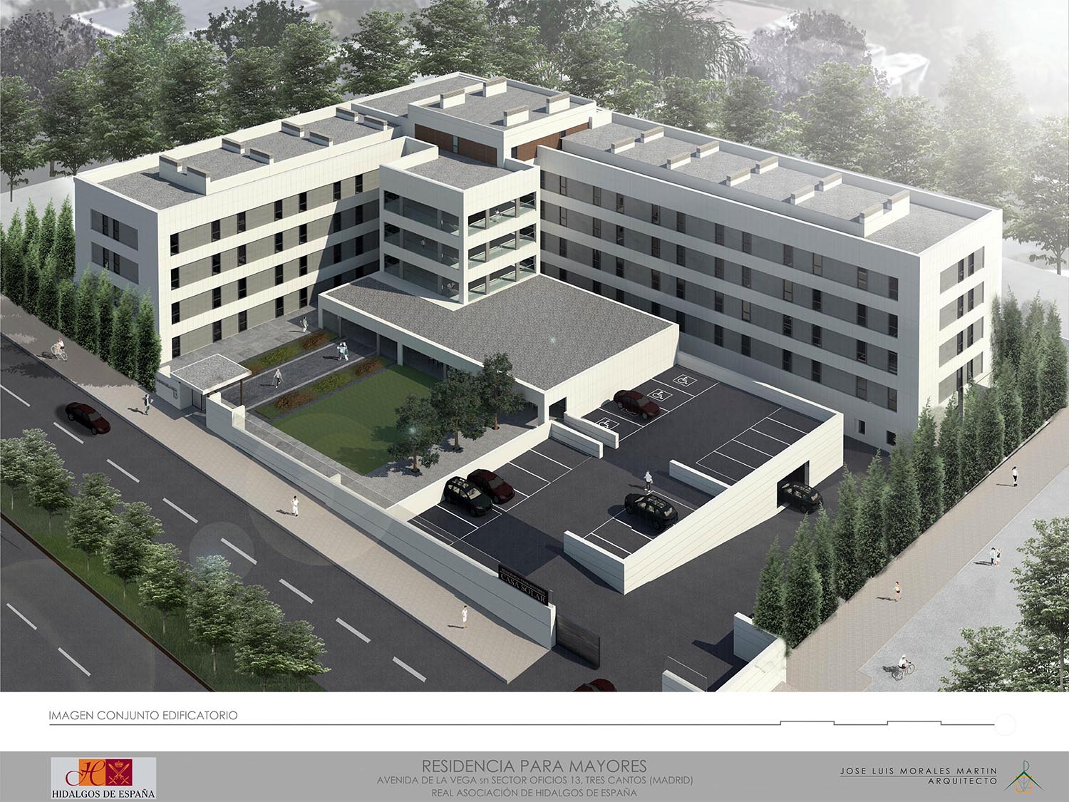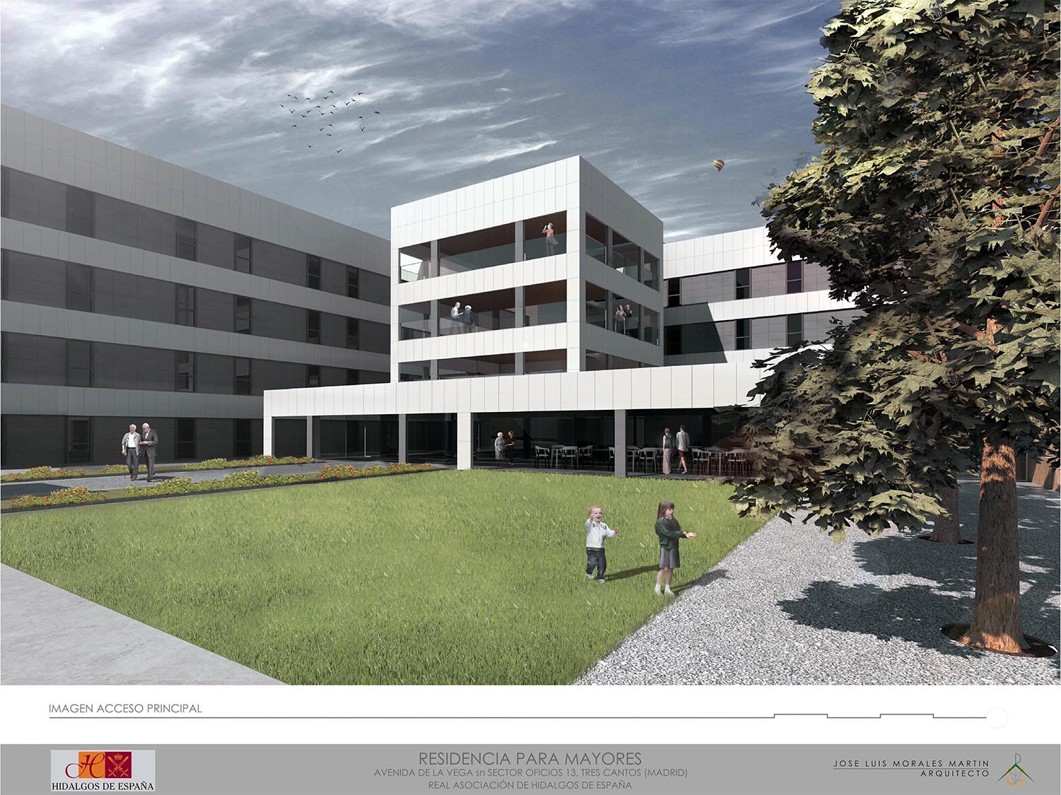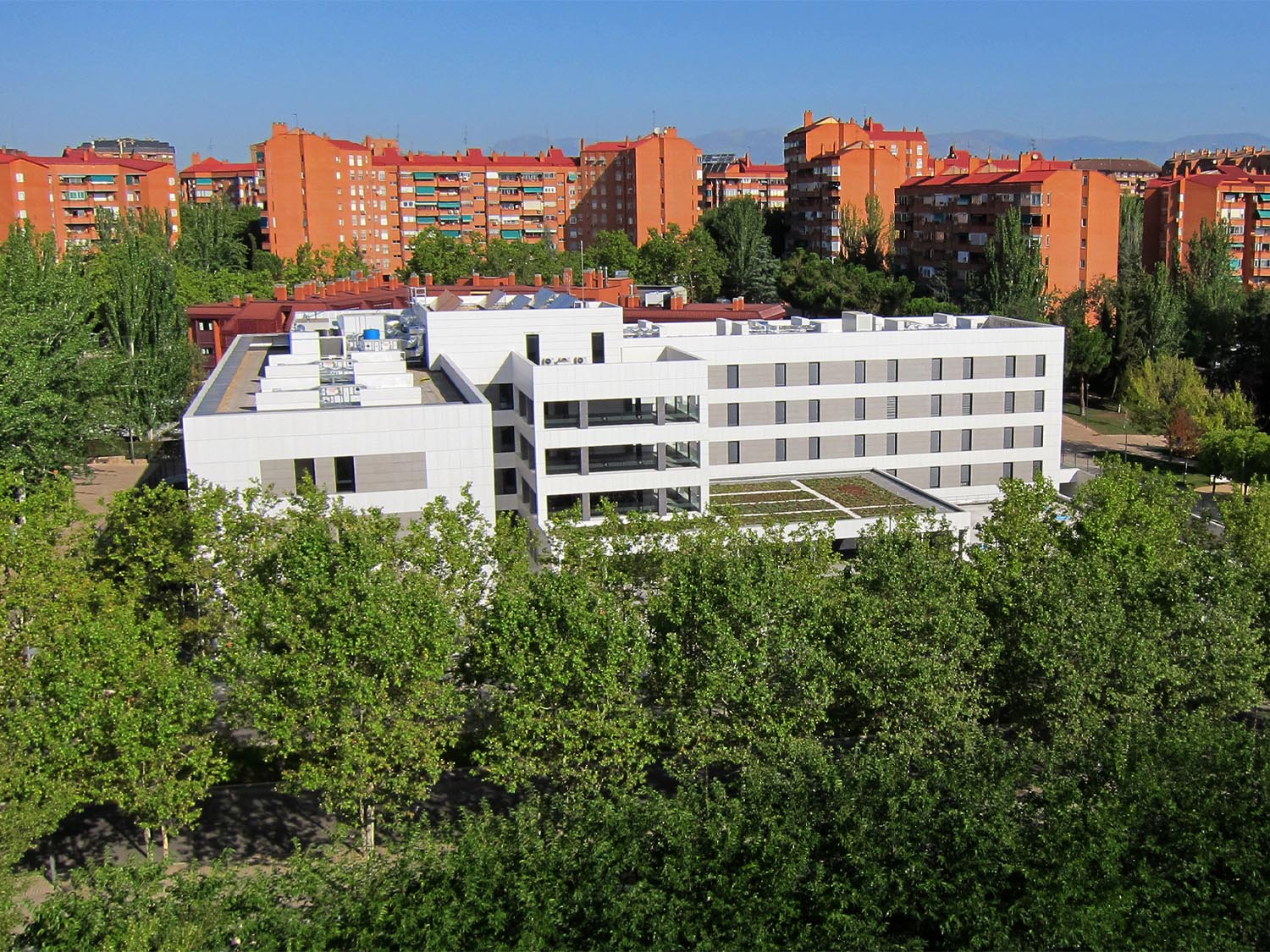 Proyecto de Arquitectura y Dirección de Obra de Residencia para mayores en Tres Cantos dotada de 157 plazas que se divide en cuatro miniresidencias con todas las estancias necesarias para el cuidado diario de las personas mayores, incluyendo rehabilitación, terapia, comedor, sala de estar, terraza exterior, para así evitar el tráfico vertical. Está dotada de zona medicalizada, cafetería para residentes y jardines exteriores.